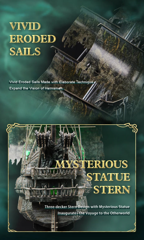 CubicFun 3D Puzzles Green LED Flying Dutchman Pirate Ship Model 360 Pieces Kits Lighting Building Ghost Sailboat Gifts for Adult