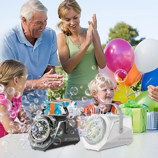 5.Scope of Application: Whether it's an indoor wedding, outdoor celebration, or children's birthday party, this stage-grade bubble machine is perfect for adding a whimsical touch. Suitable for many occasions with its powerful functions, this elegant bubble machine makes every party an unforgettable memory.