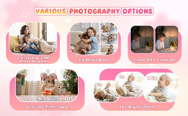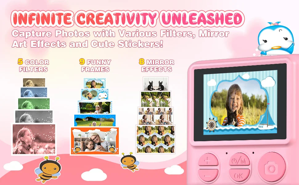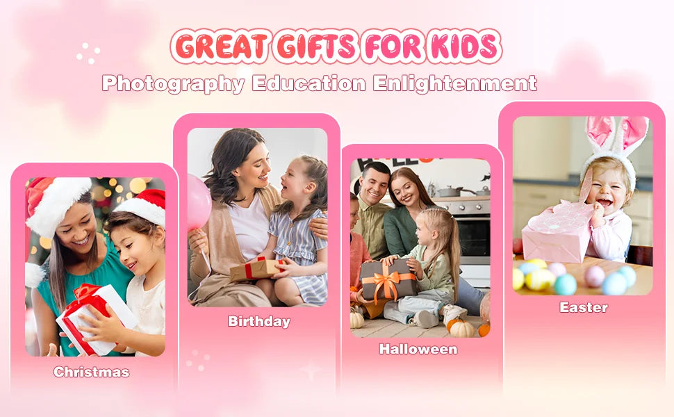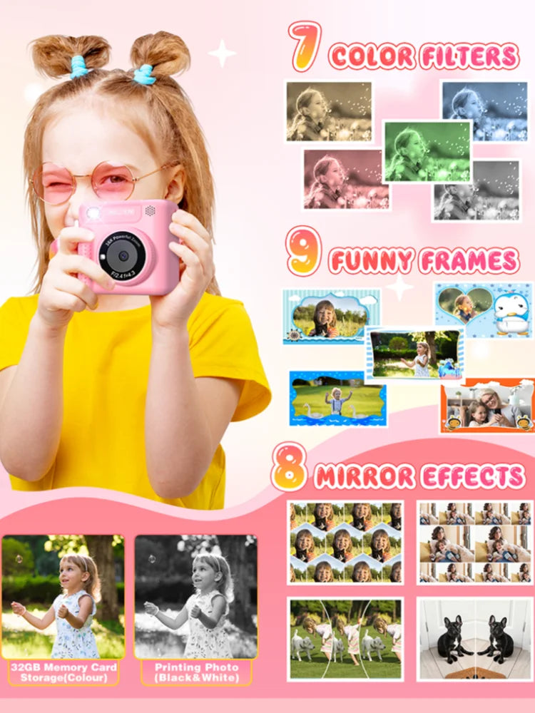 š·ćFirst Camera Gifts for KidsćThis camera is designed with kids in mind and great introduction to the world of photography for kids. Every process of creating a printing DIY artwork, which is highly stimulate child's creativity and develop an interest in art of photography. This is a fun and educational camera that provides hours of entertainment while teaching valuable skills to kids, perfect birthday, Easter, Christmas, holiday gift choice for aged 3-12 girls and boys.
